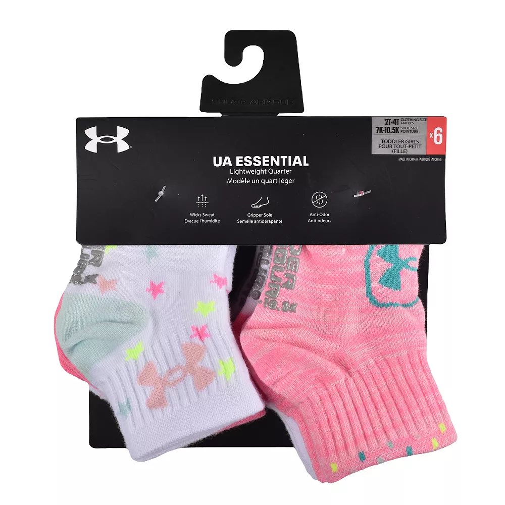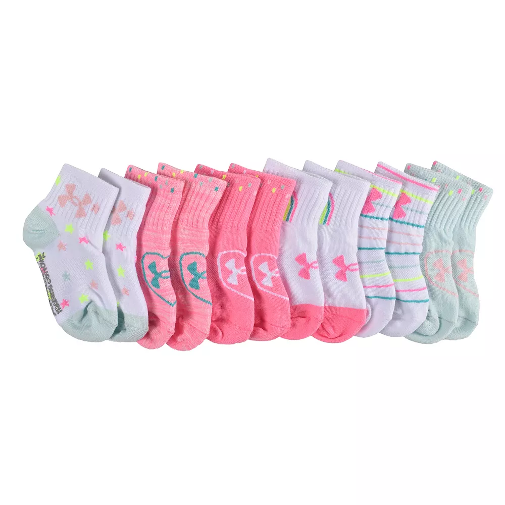 Finish off her outfits adorably with this 6-pack of brightly colored baby & toddler girls’ socks from Under Armour.
