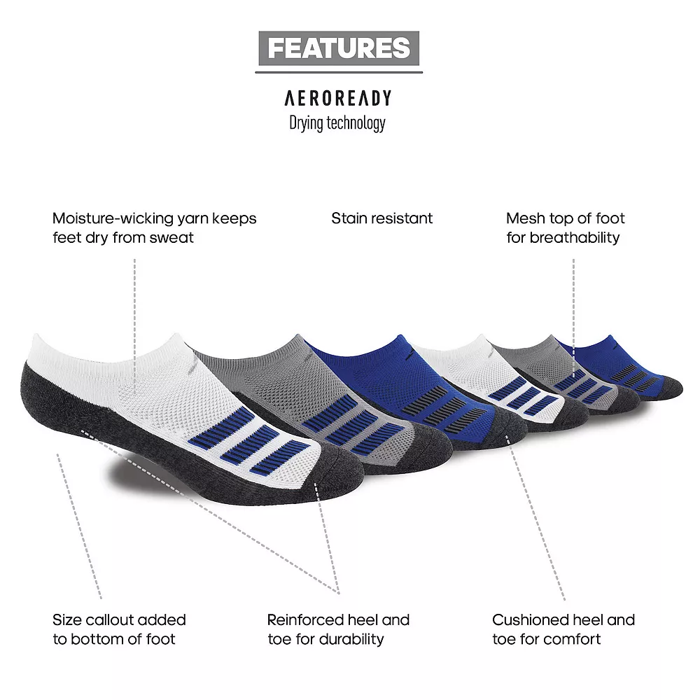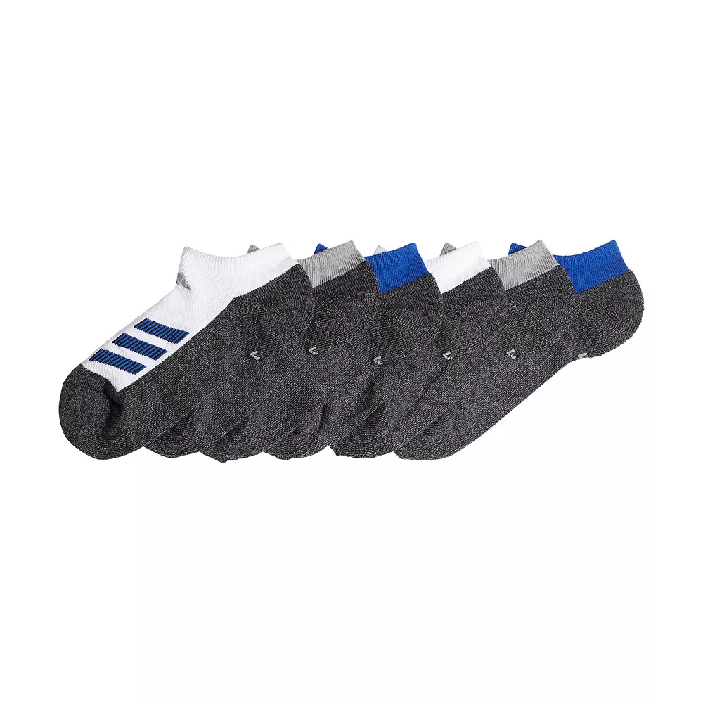 Featuring a chushioned heel and toe, he’ll love the all-day comfort of these boys’ adidas Angle Stripe socks.