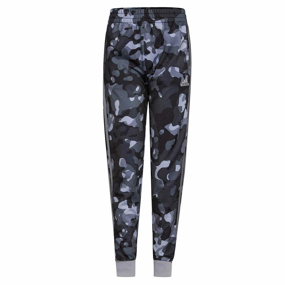 Keep him looking cool in these trendy boys’ camo print joggers from adidas.