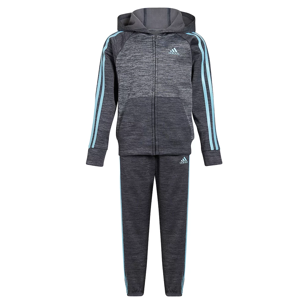 He’ll be the coolest kid on the playground in this boys’ fleece hoodie and joggers set from adidas.