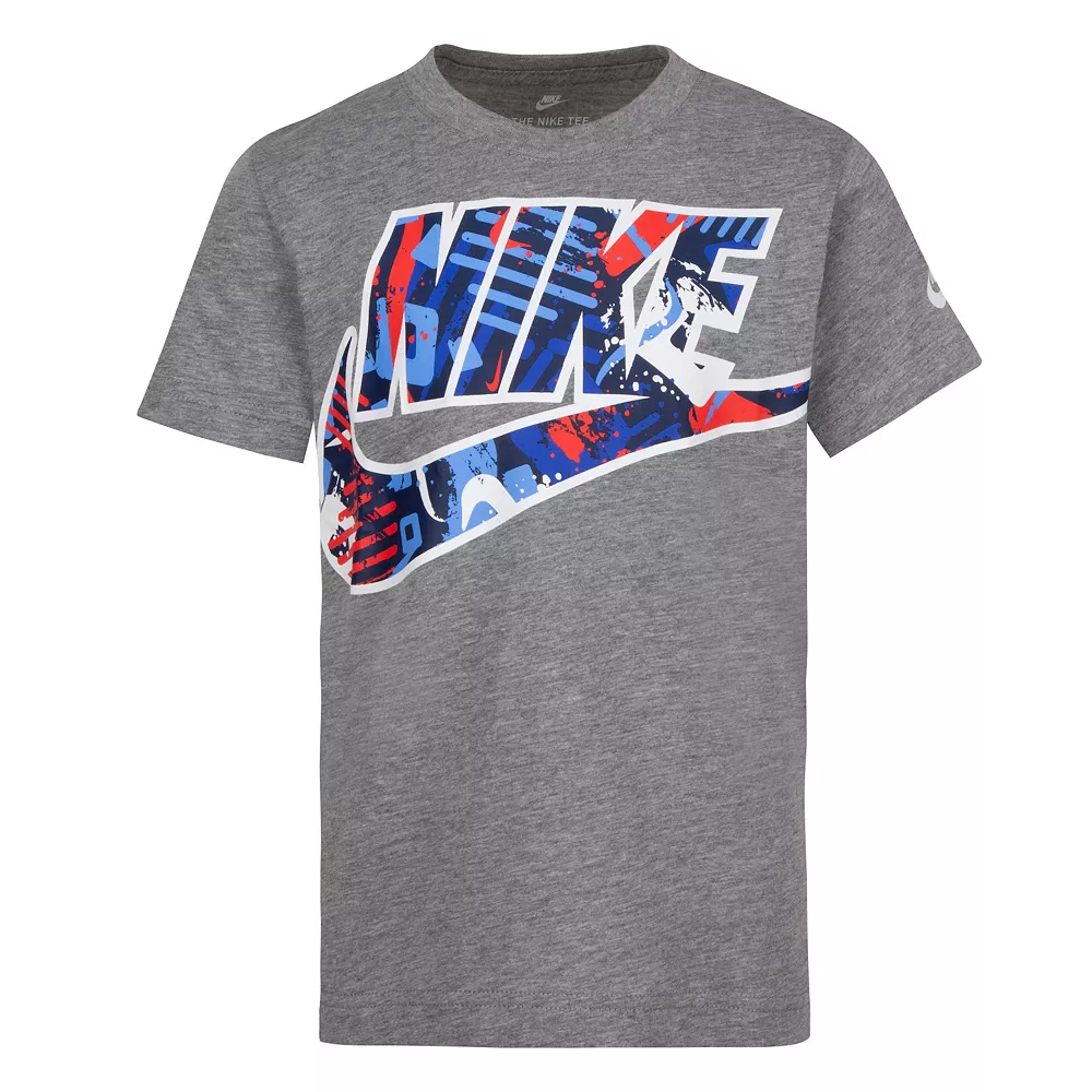 Unique graphic design inside the logo gives this boys’ Nike tee iconic style!