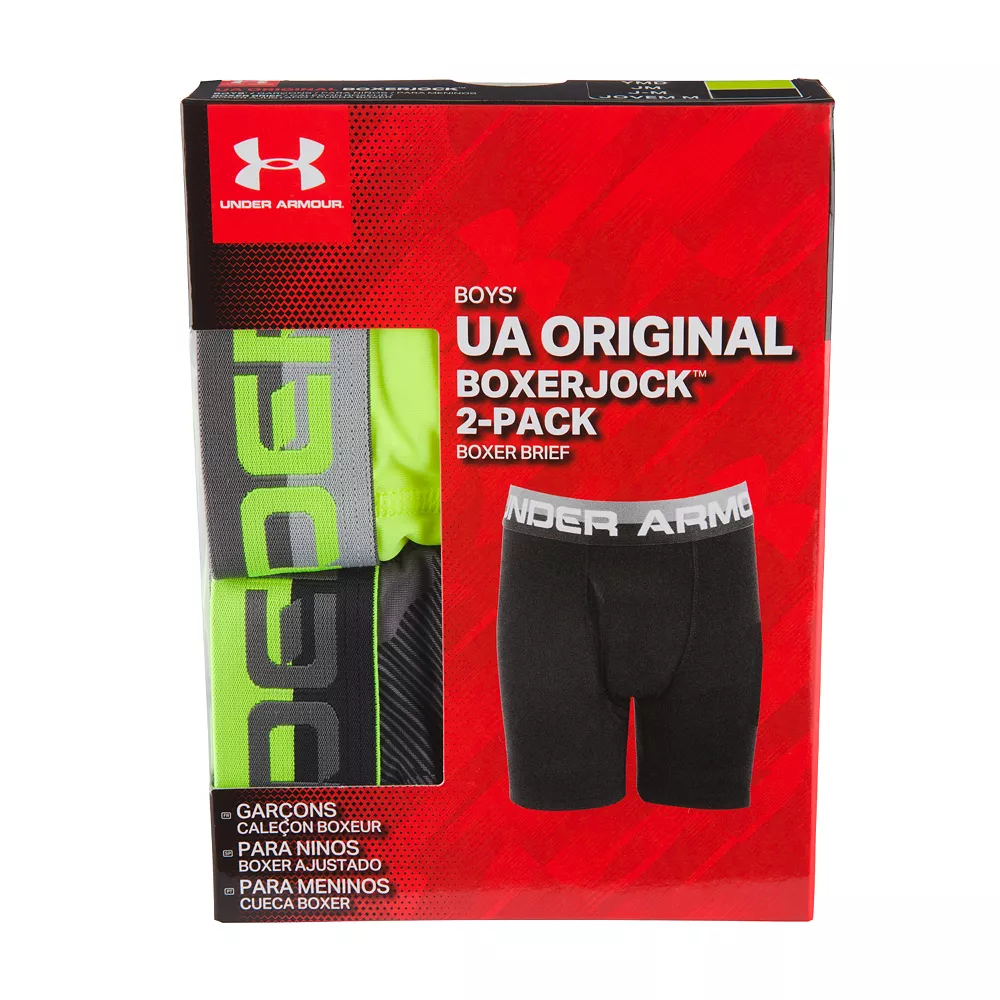 He’ll blend in wearing these boys’ Under Armour boxer briefs.