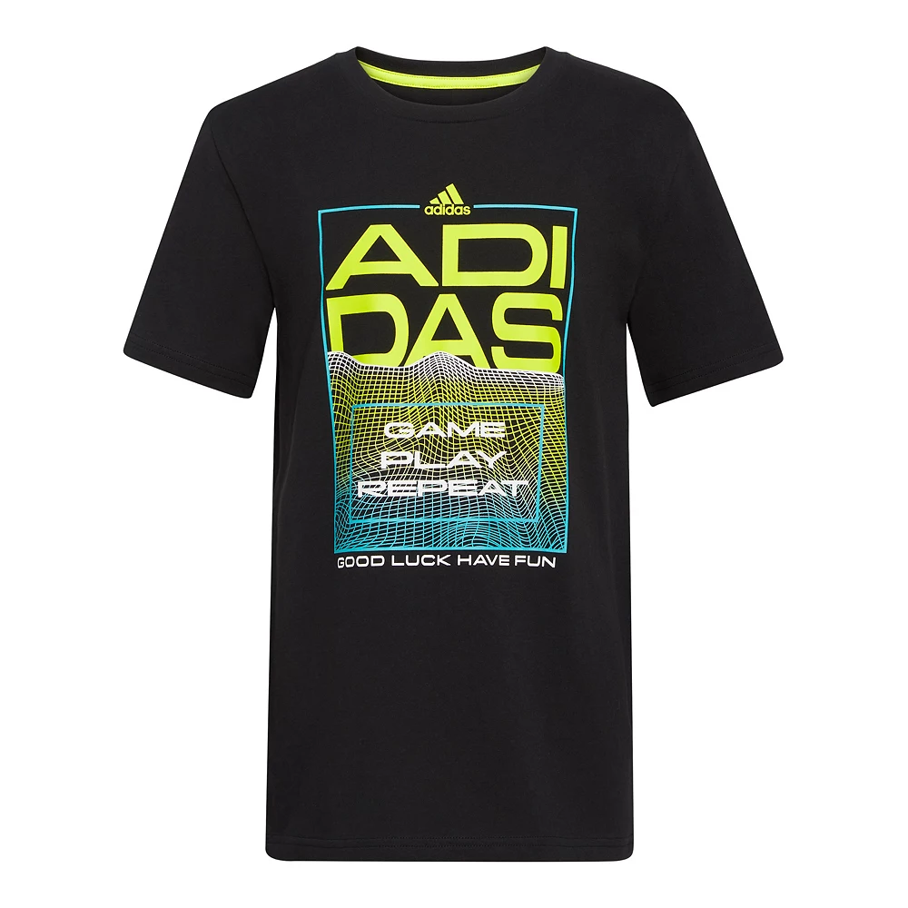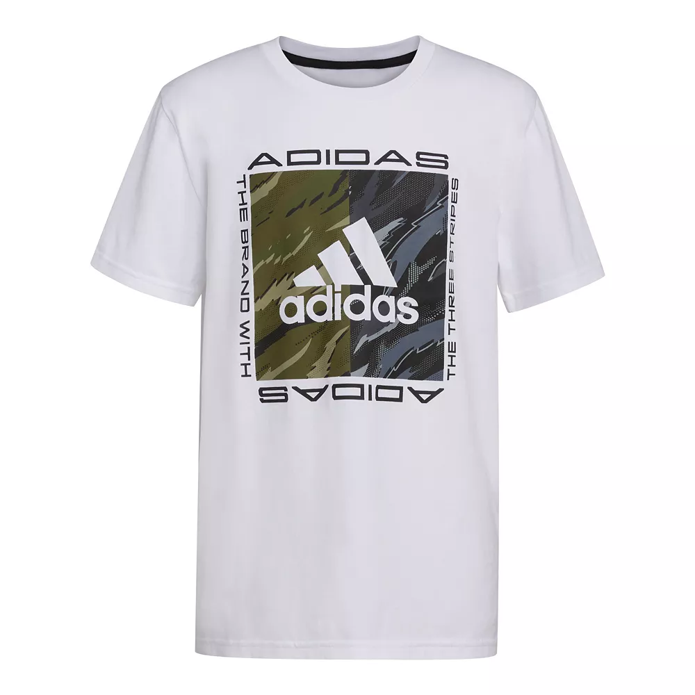 Max out his sporty style with this boys’ t-shirt from adidas.