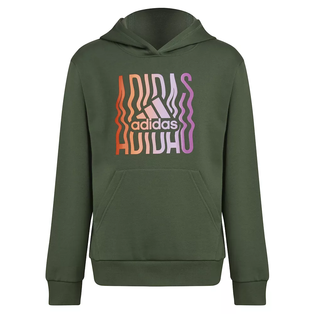 Don’t settle for ordinary. Bright colors and geometric details level up the look of this boys’ adidas hoodie. Soft, warm fleece means he’ll be comfortable all day long. Wash it, wear it and repeat.