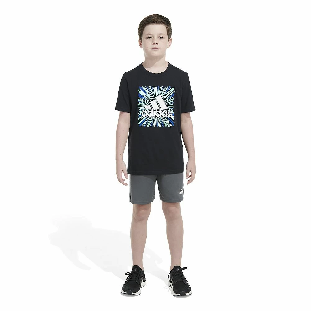 Not that the adidas logo needs a backdrop. But this boys’ t-shirt brings the fireworks anyway.