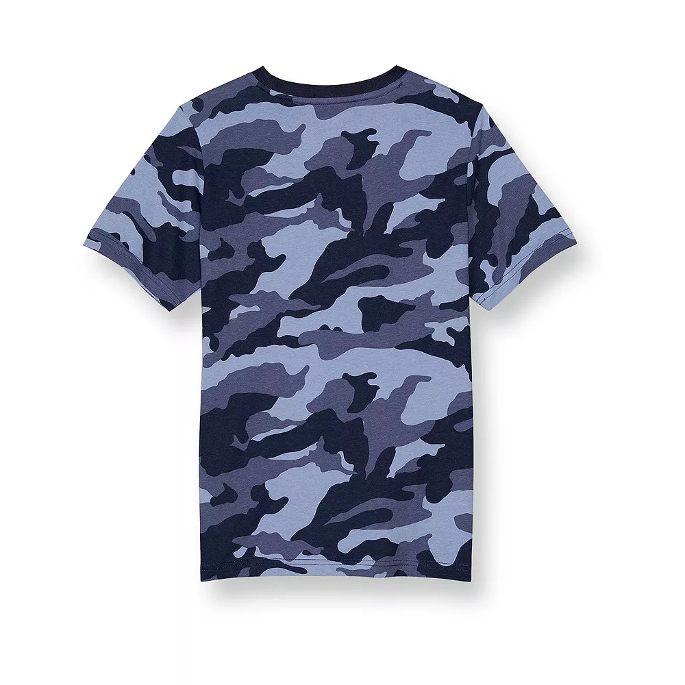 He’ll blend in comfortably with this boys’ Champion camo tee.
