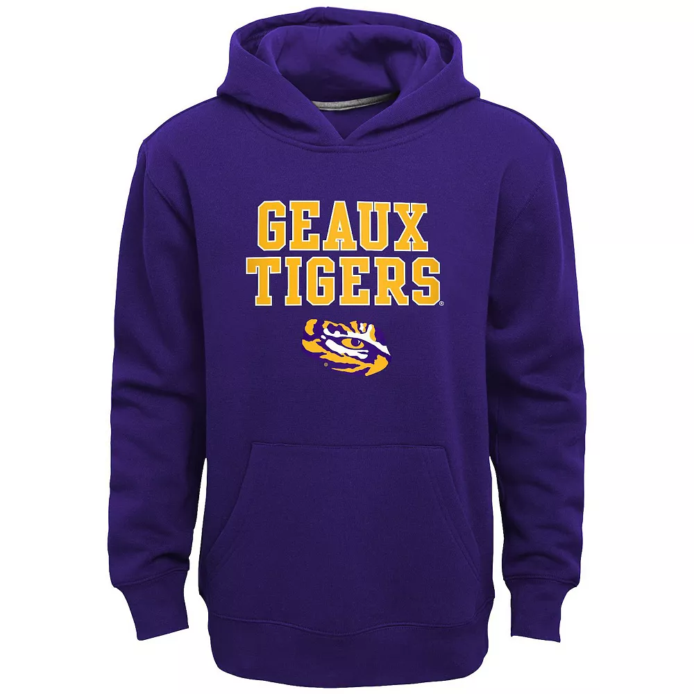 Showing off his team pride comes easy, and comfy, when he gears up with this LSU Tigers boys’ fleece hoodie.
