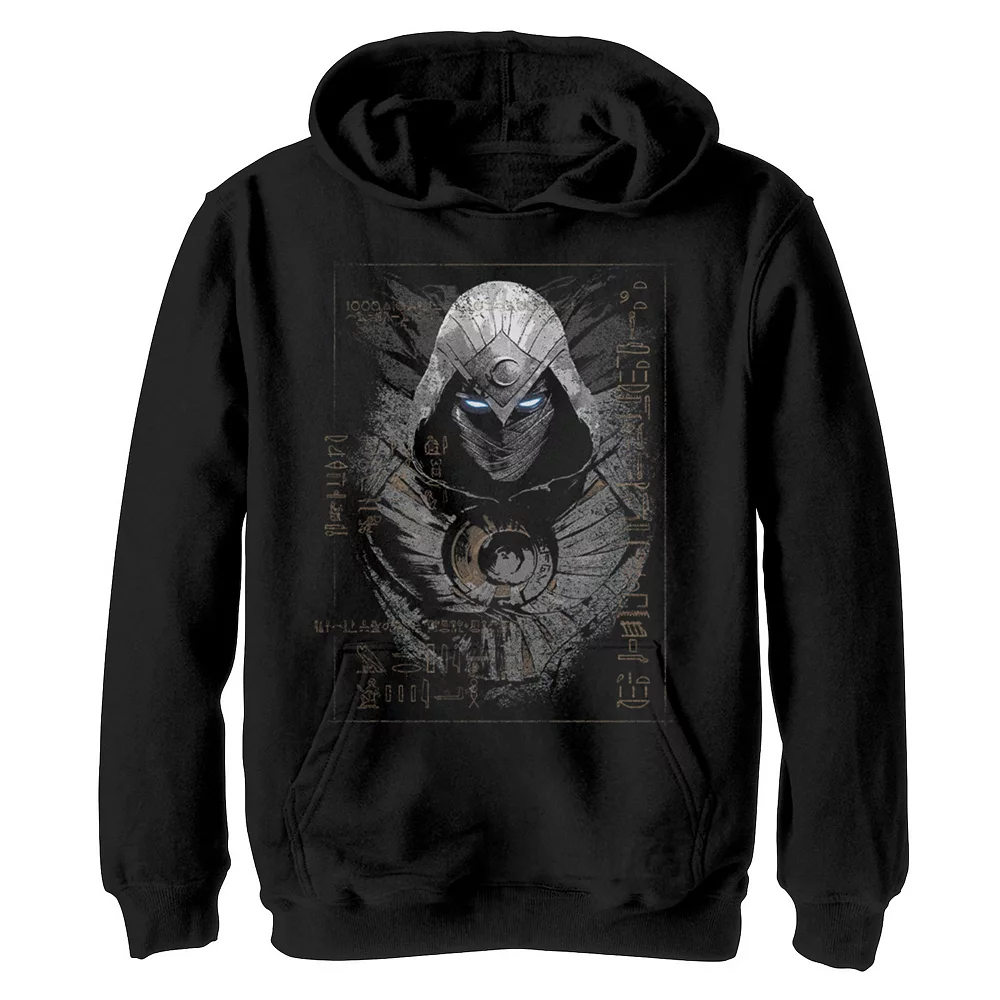 He’ll love showing off his unique sense of style in this Boys 8-20 Marvel Moon Knight Ancient Glyphs Headshot Graphic Hoodie.
