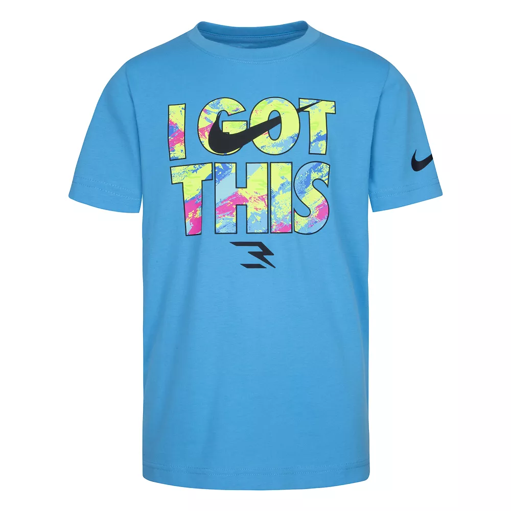 Winning is always an option when he gears up with this boys’ Nike 3BRAND t-shirt featuring a energizing graphic. Nike 3BRAND is part of a collaboration with Russel Wilson.