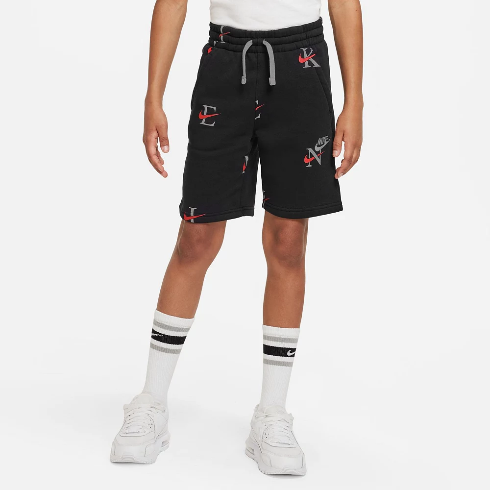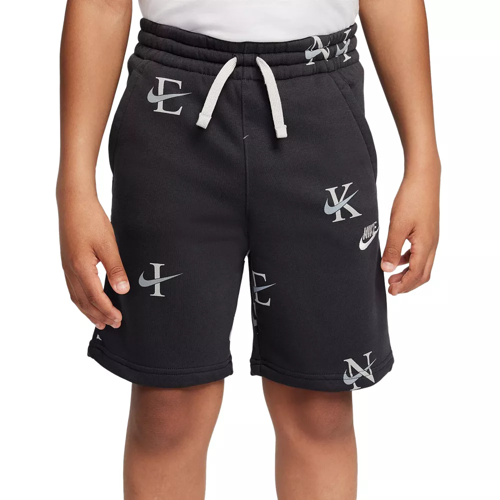 Flex the Nike brand in pure comfort with these boys’ fleece shorts. The allover Nike print of these boys’ shorts lets him show off his brand love.