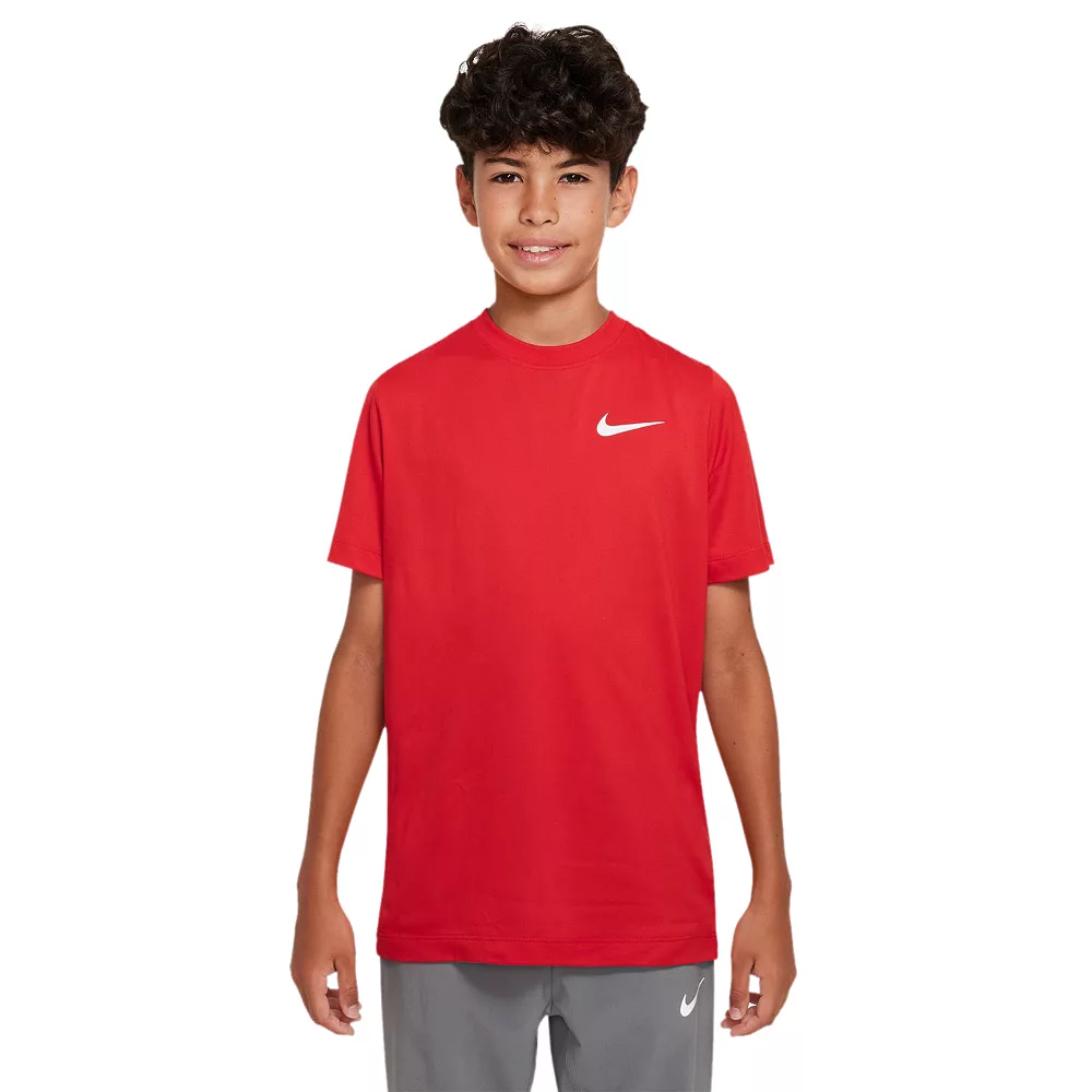 A basic active tee with just 1 question: How many colors does it come in? This boys’ Nike Dri-FIT tee kicks away sweat while he’llpractice and play, plus is stamped with our Swoosh on the chest.