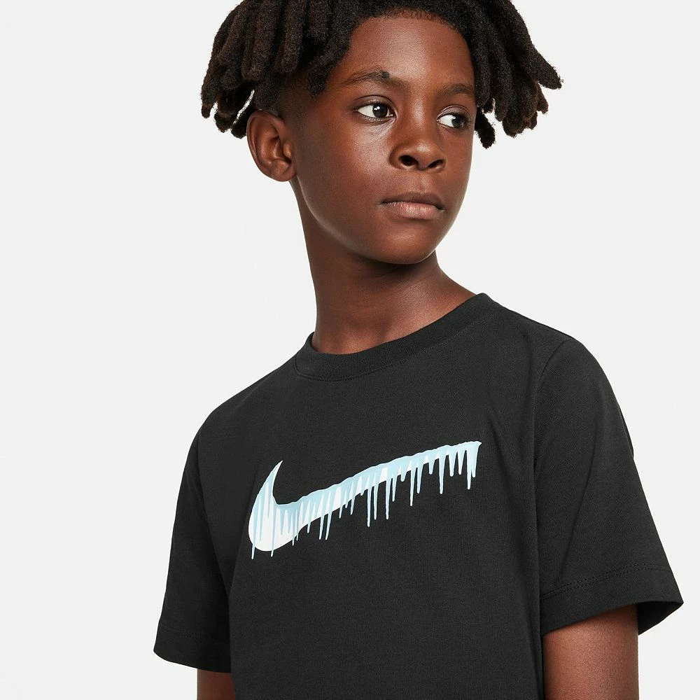 Ribbed collar stretches so you can easily change in and out It’s time to cool off (but don’t get too cold!) with this boys’ Nike tee that’s 100% Swoosh approved.