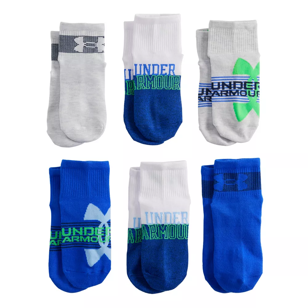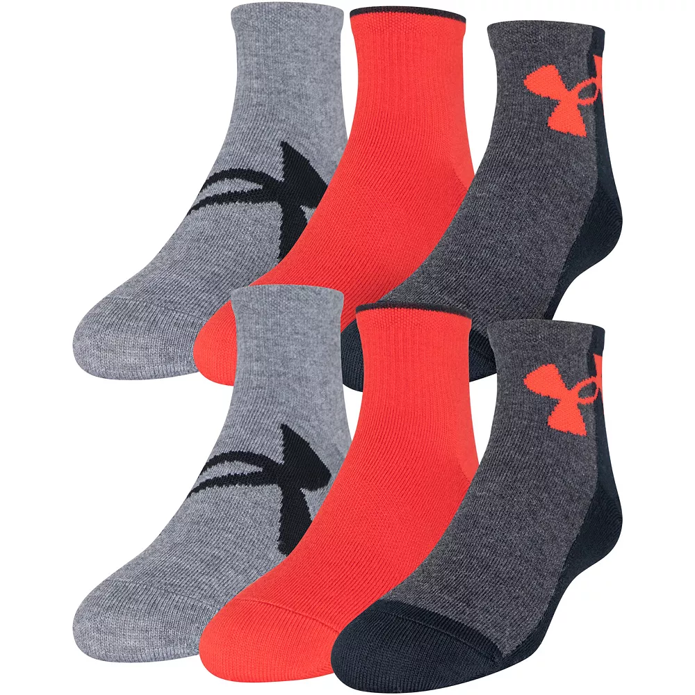 Refresh his athletic basics with these boys’ Under Armour moisture-wicking quarter-cut socks.