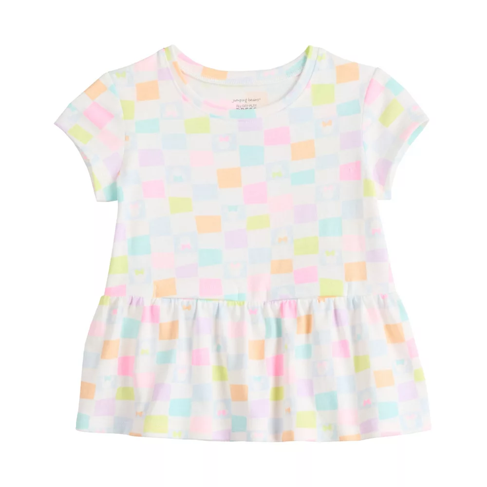Give your fashionista sweet style with this girls’ Minnie Mouse peplum graphic tee from Disney/Jumping Beans.