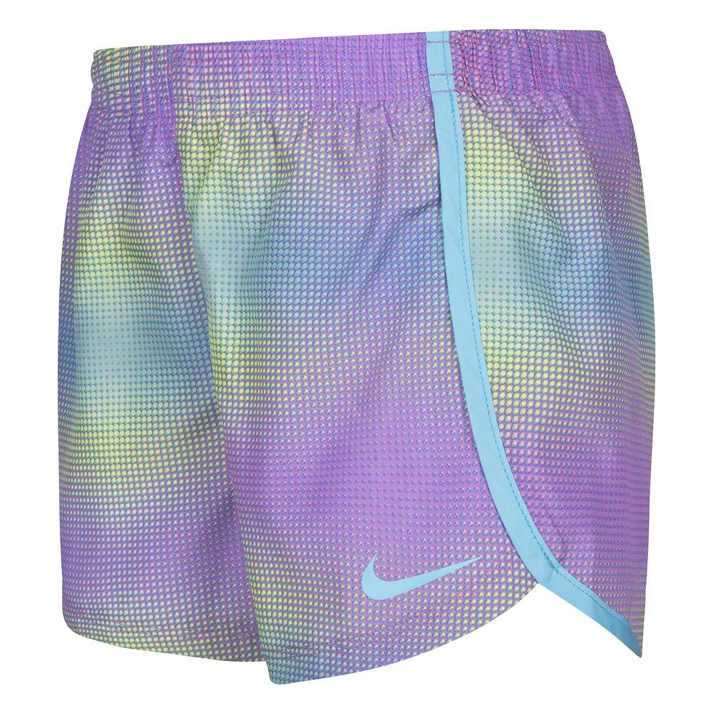- Shorts: woven microfiber fabric with moisture-wicking Dri-FIT technology, allover graphic print, elasticized waistband, solid binding trim at sides and hem, and built-in liner for full coverage.