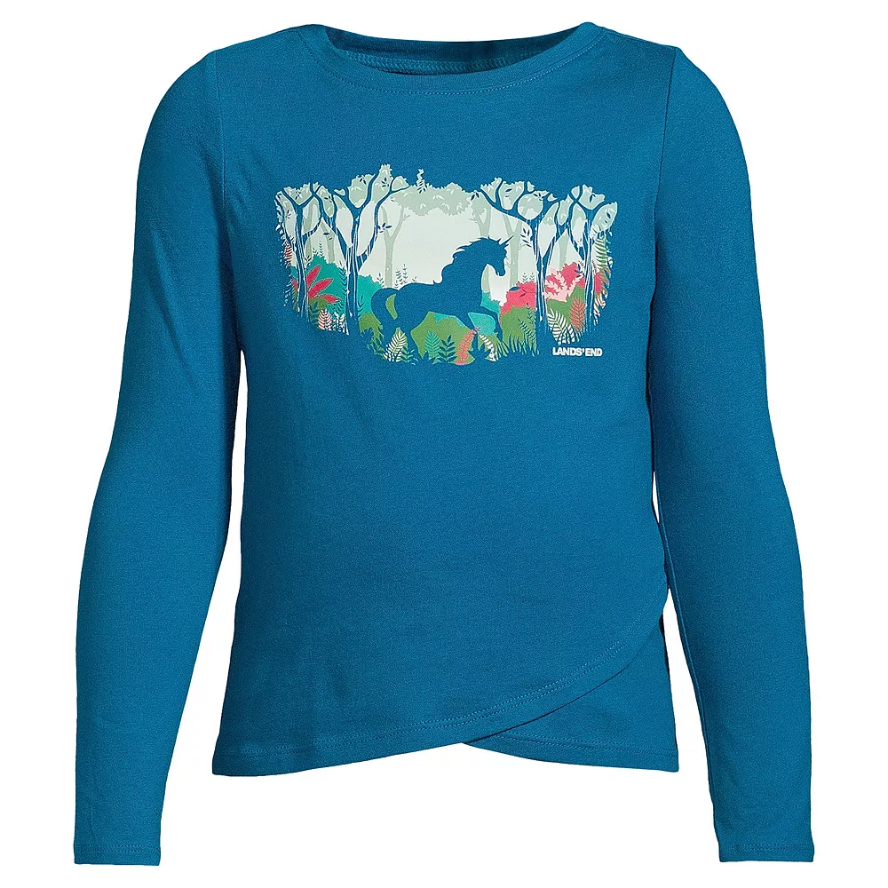 A cute graphic makes this girls’ Lands’ End tee a fun choice she’s sure to love.