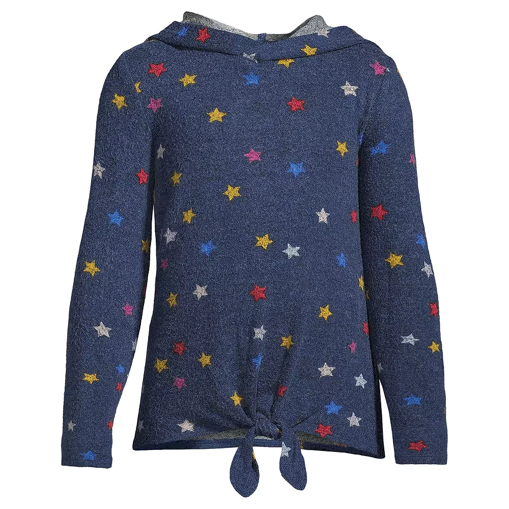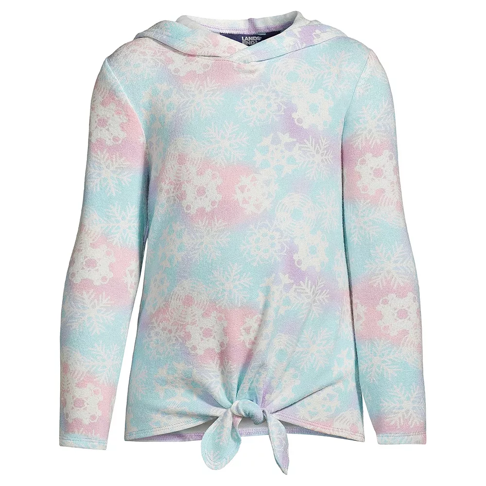 A tie front and cozy construction make this girls’ Lands’ End top a top choice!