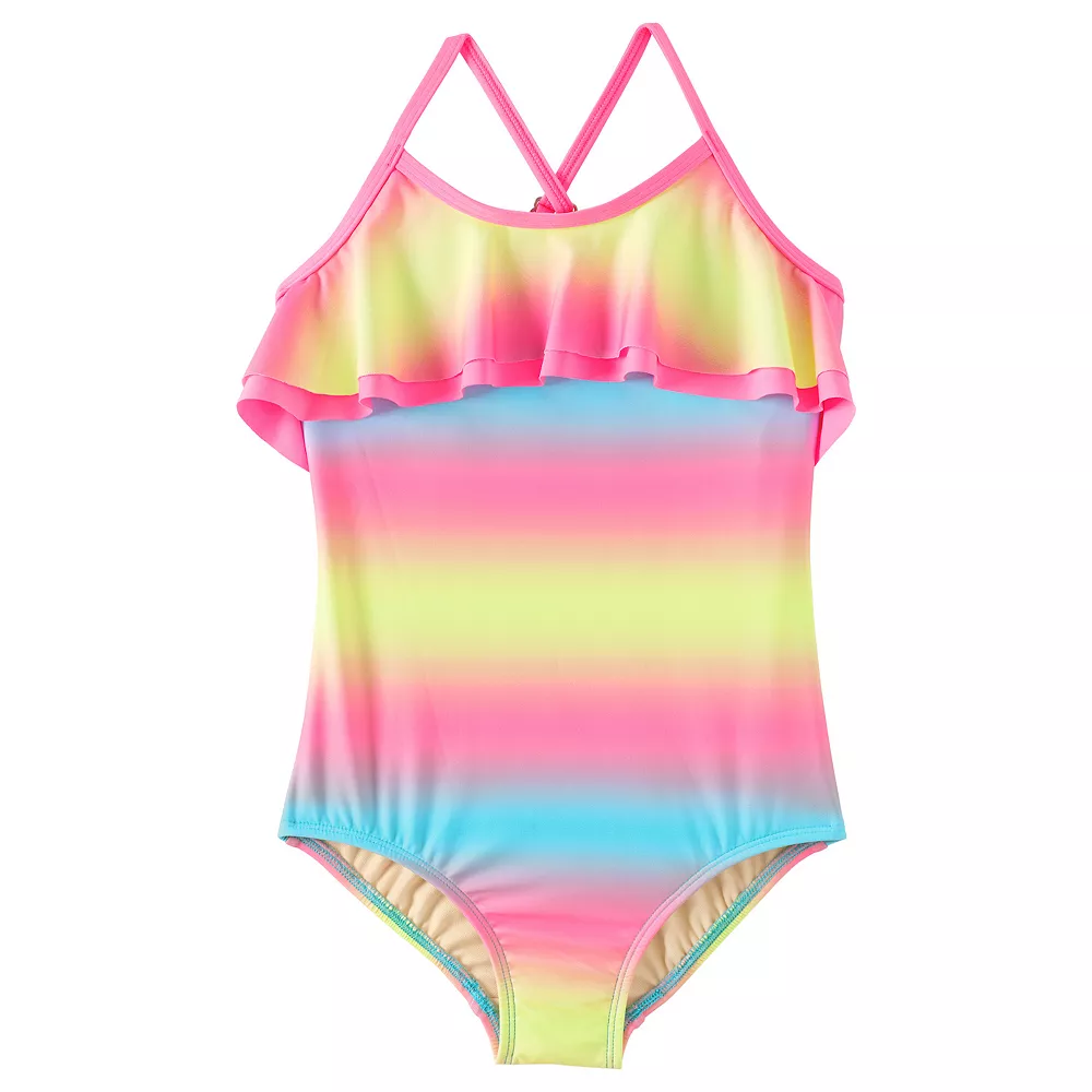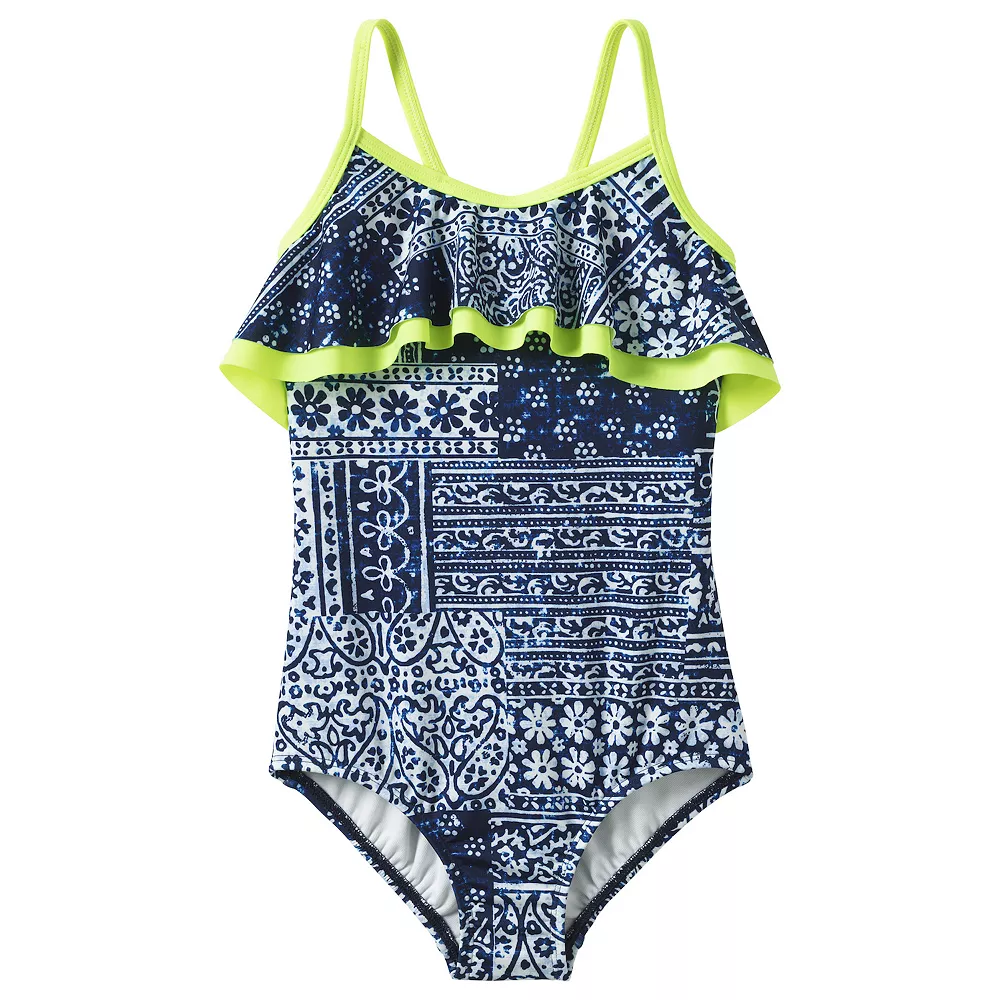 She’ll look too cute wearing this girls’ Lands’ End one-piece swimsuit.