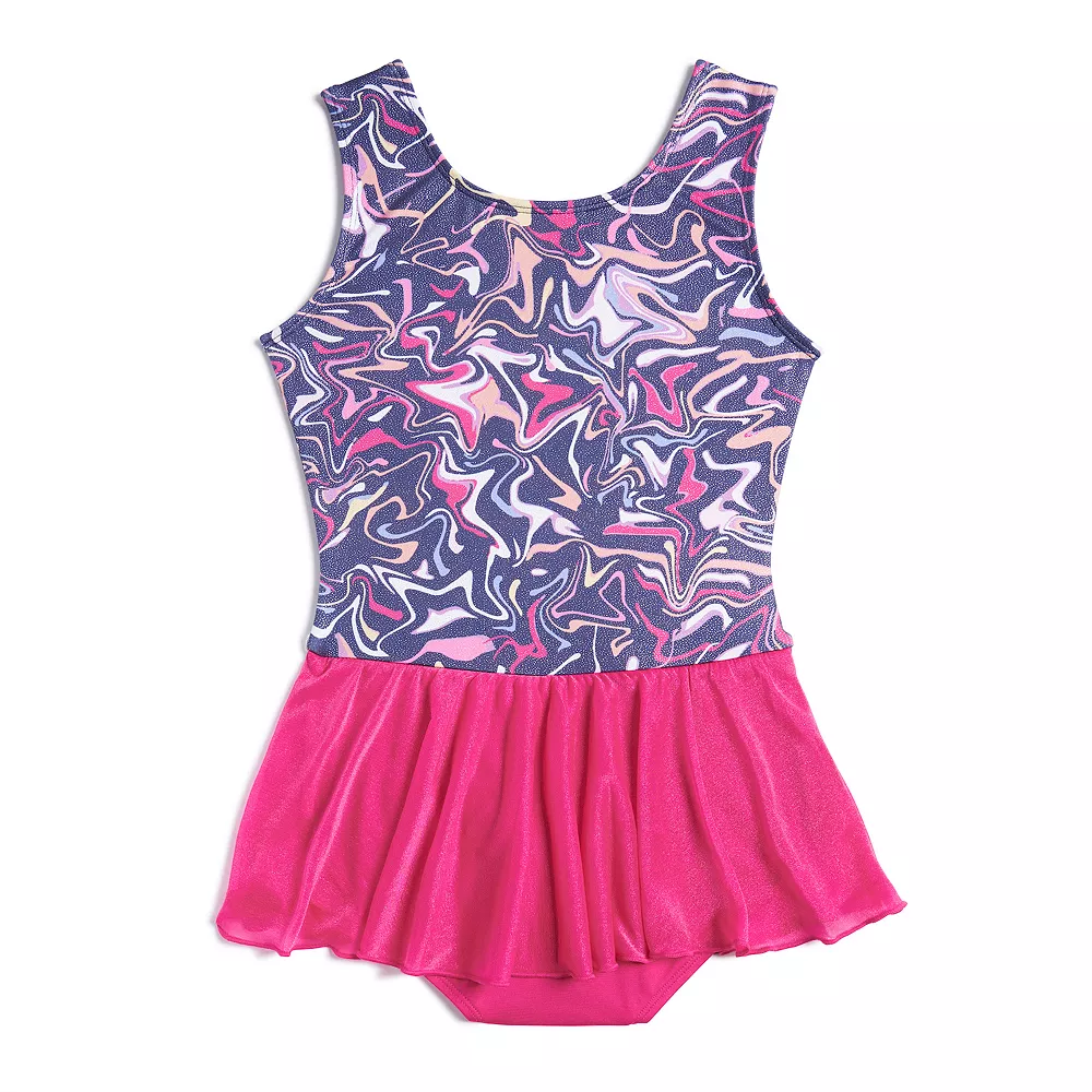 She’ll be ready to flip, spin and leap wearing this girls’ Jacques Moret Gymnastics Swirl Skirtall.