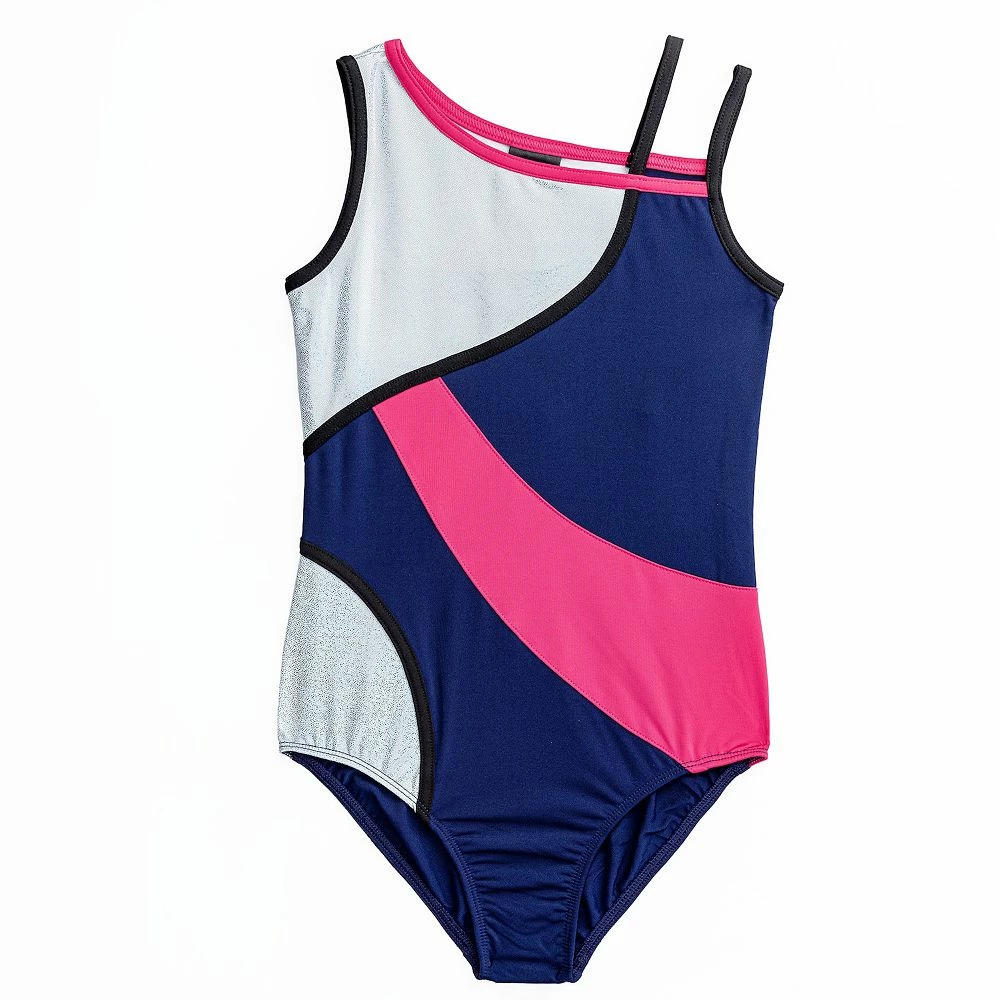 She’ll love the chic pattern and comfy flexibility of this sleek girls’ Rainbeau Moves Colorblock Tank leotard.