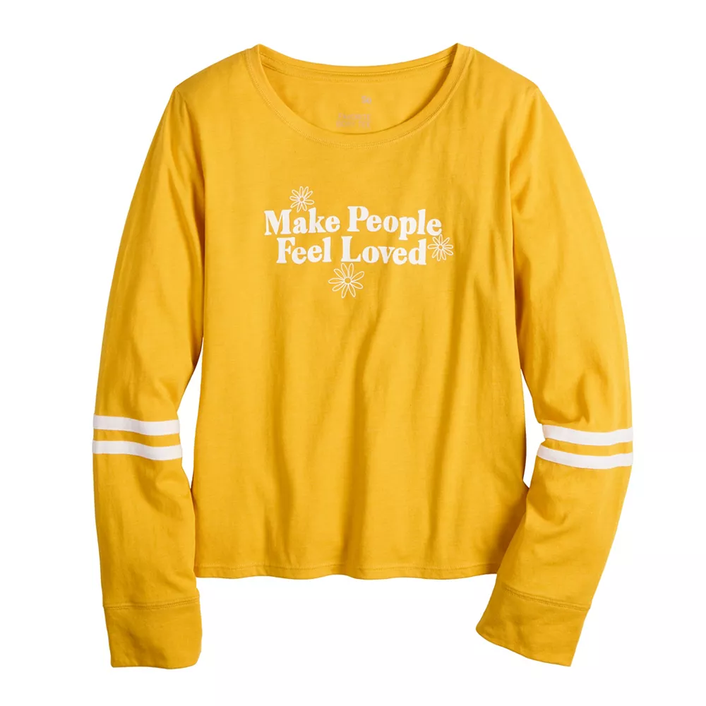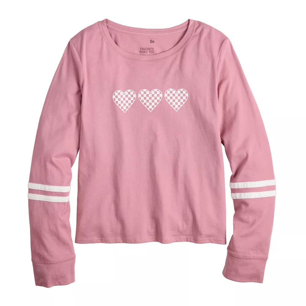 Your little lady will look so stylish in this girls’ long-sleeve tee from SO.
