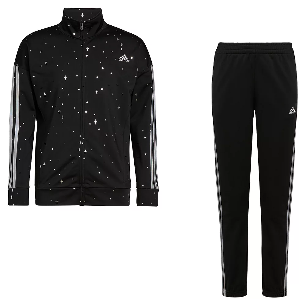 She can’t go wrong with this classic adidas girls’ tracksuit. Design elements on this girls’ outfit make sure she stands out from the crowd. Hits of color add pop. Both pieces feature the signature sheen of tricot for OG style.