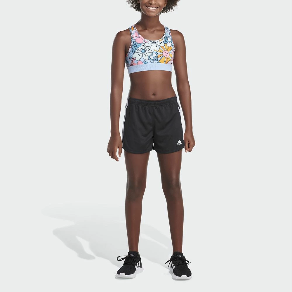 This adidas girls’ sports bra supports her active lifestyle.