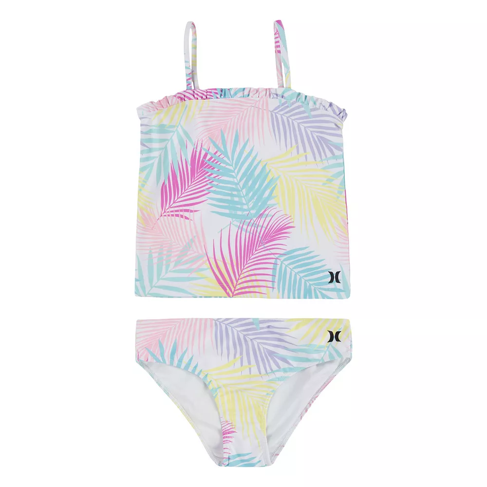 Ruffled accents give this girls’ Hurley tankini top and bottoms swimsuit set fun and flirty style she’s sure to love.