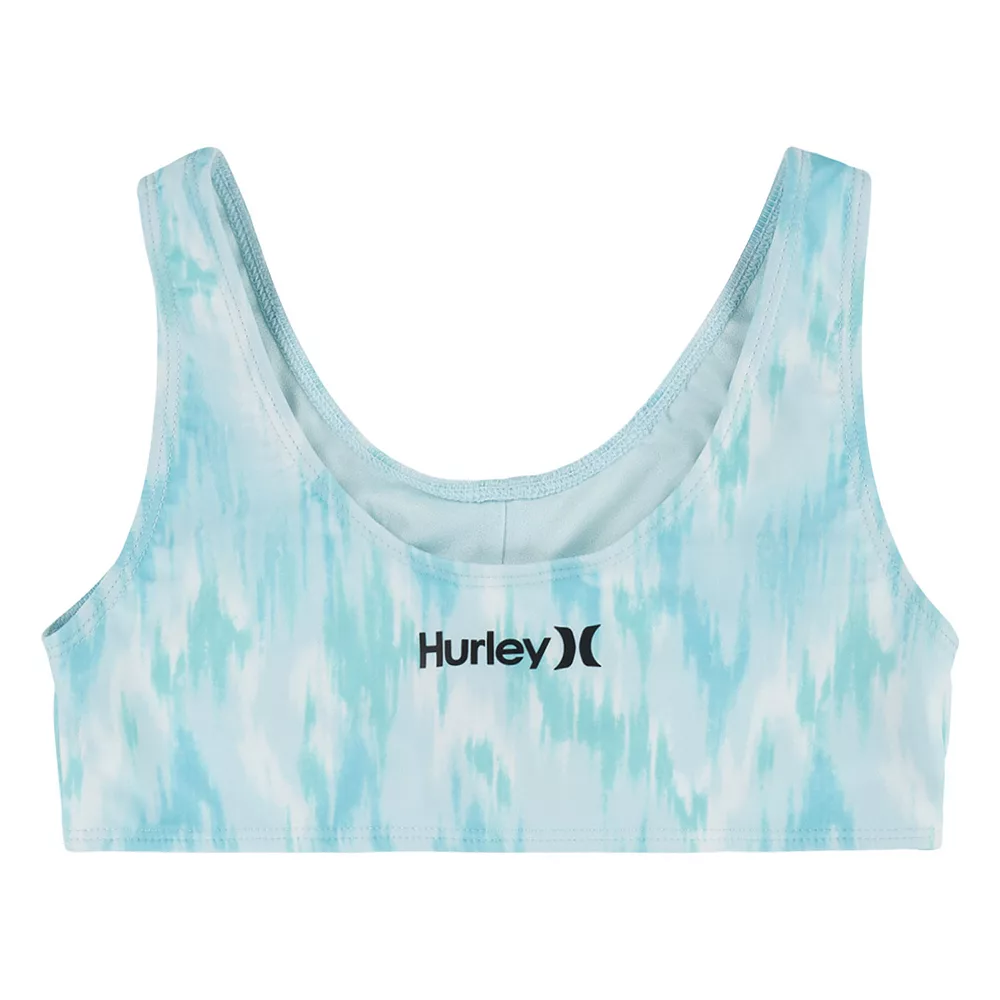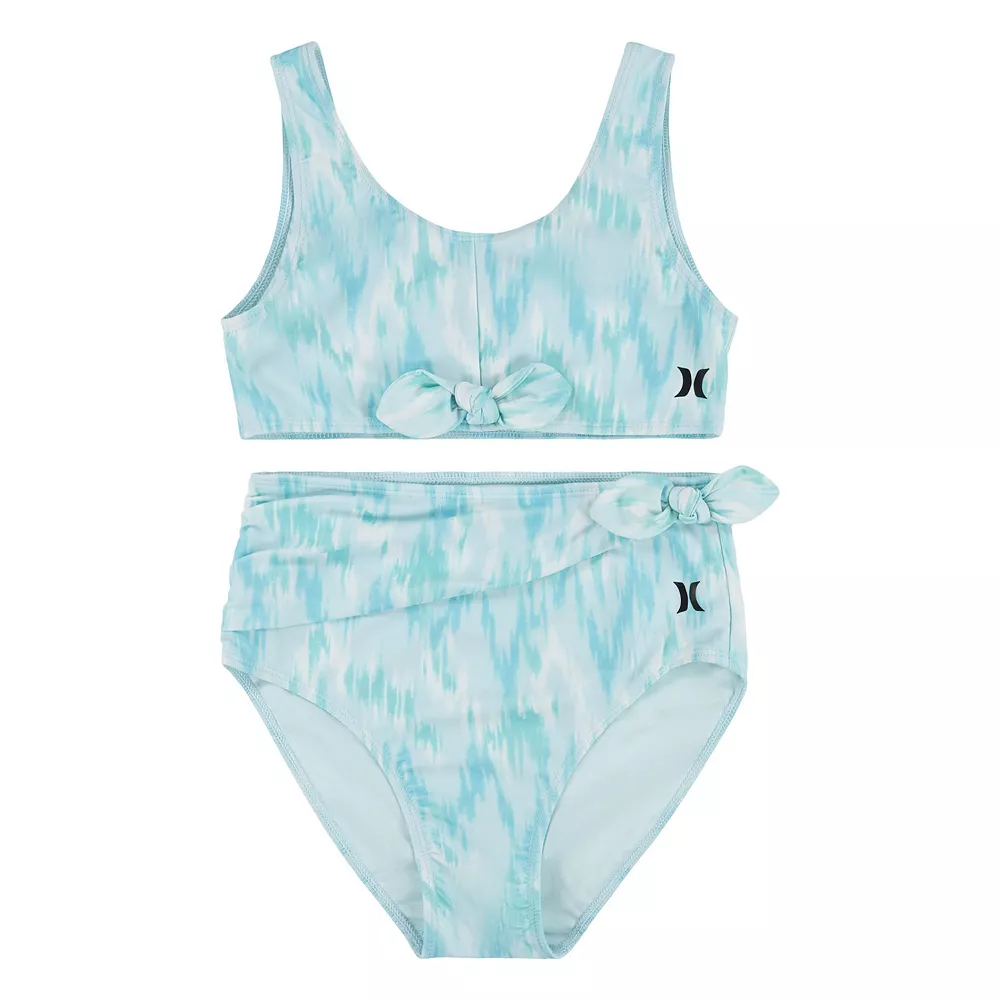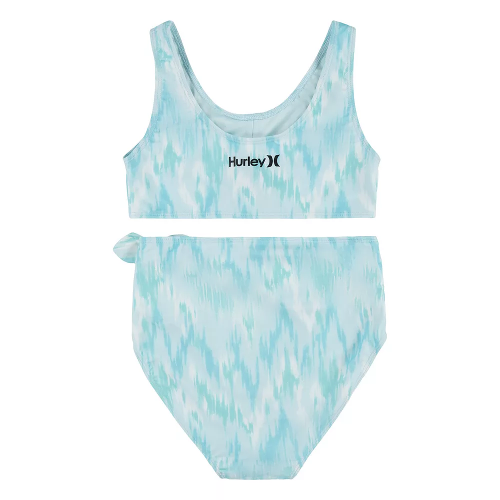 A wrap design makes this girls’ Hurley bikini top and bottoms swimsuit set a fun choice for your beach-loving gal.