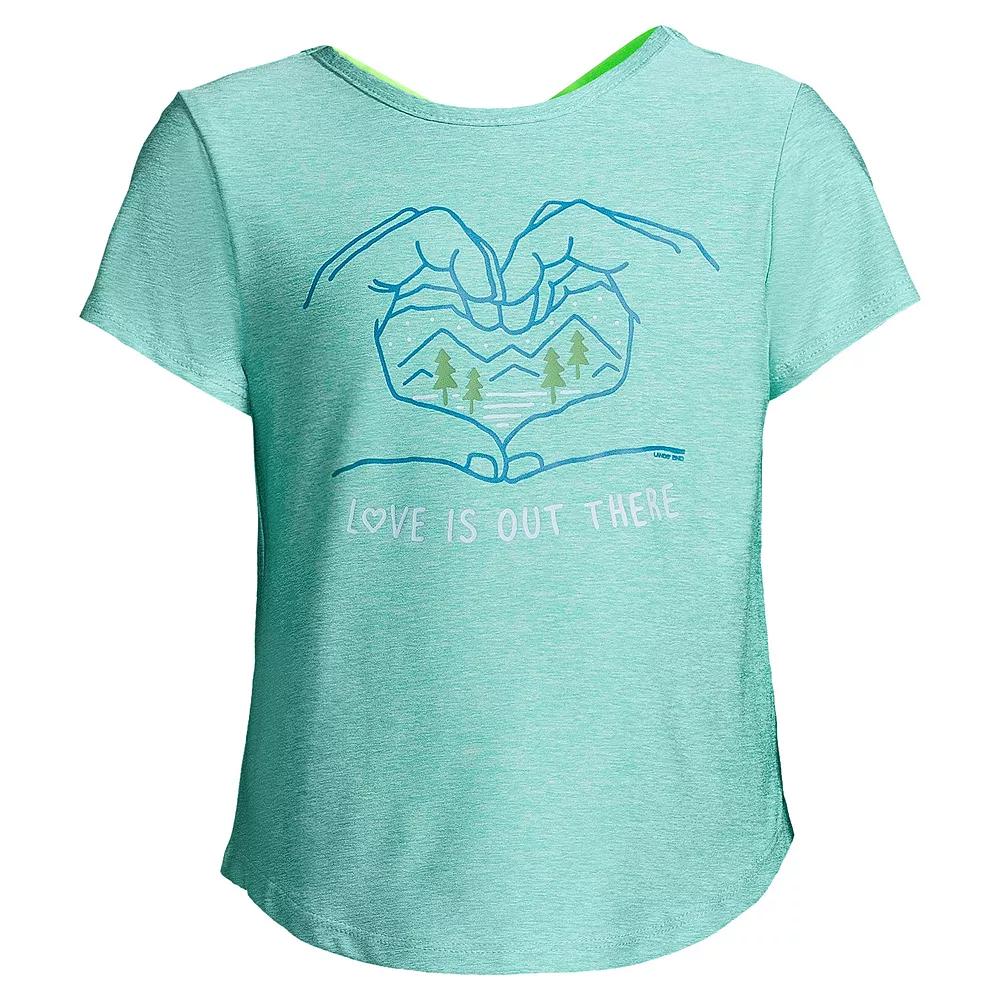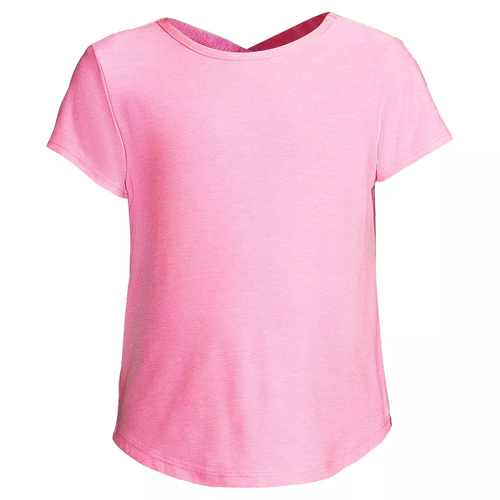She’ll be ready to get up and go in this girls’ Lands’ End performance tee with crisscross back straps.
