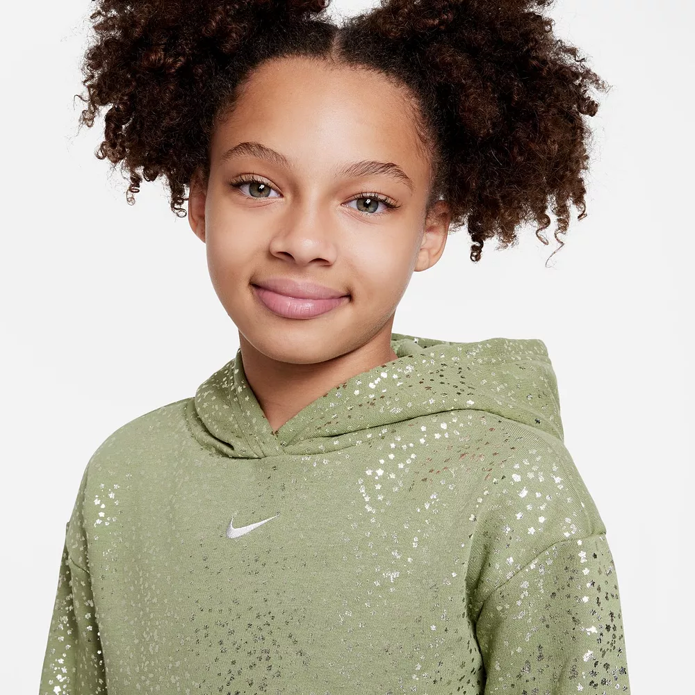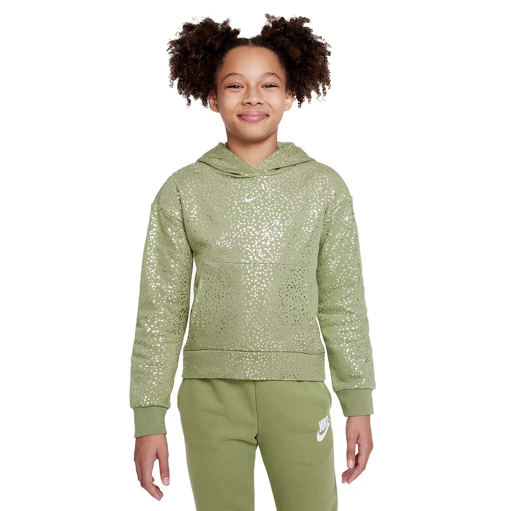 Soft fleece hoodies for the win! You can never have enough of them in your collection. What makes this Nike Sportswear one a little extra special? The metallic gold starry print shines bright from morning to night.