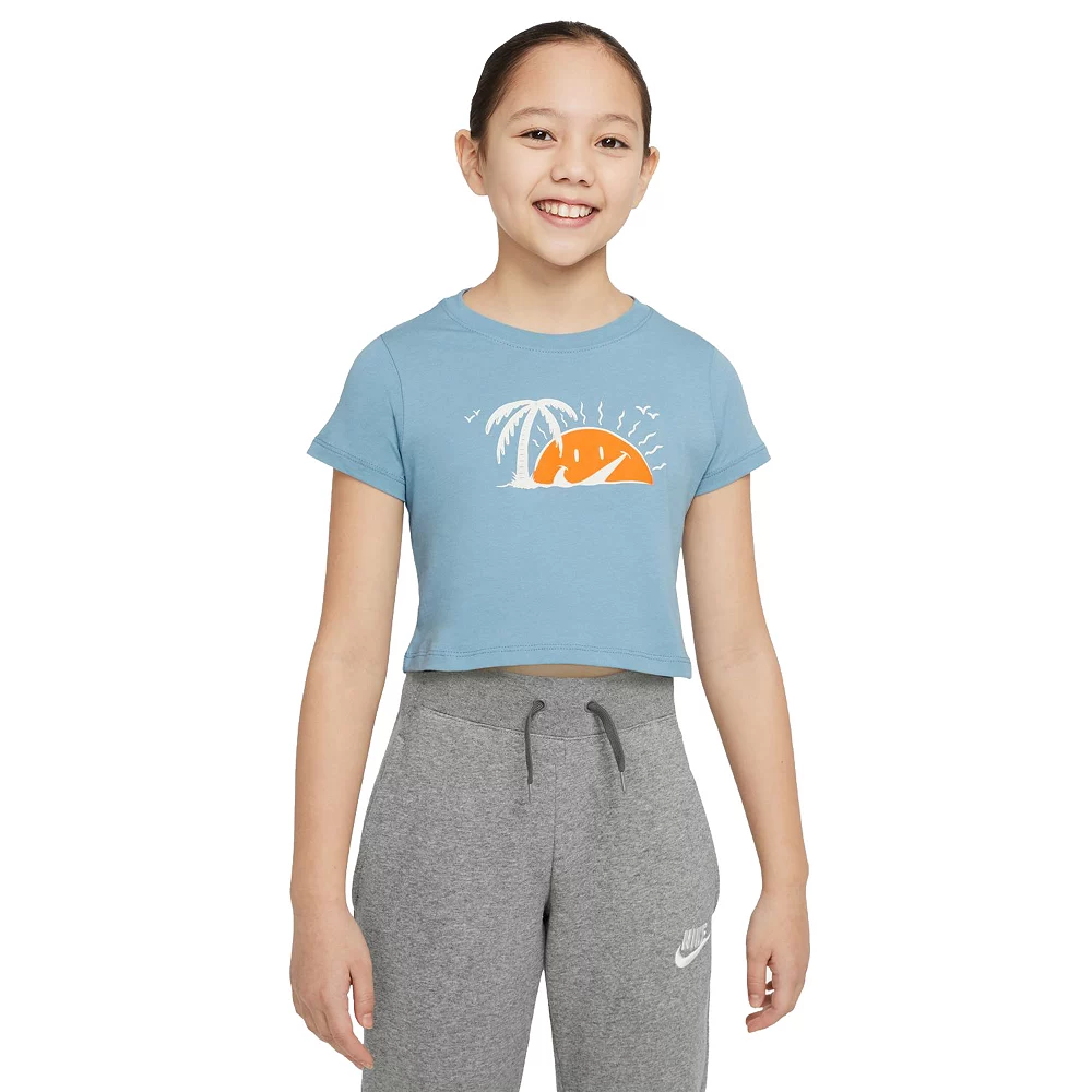 Good vibes only when she throws on this Nike girls’ cropped t-shirt.