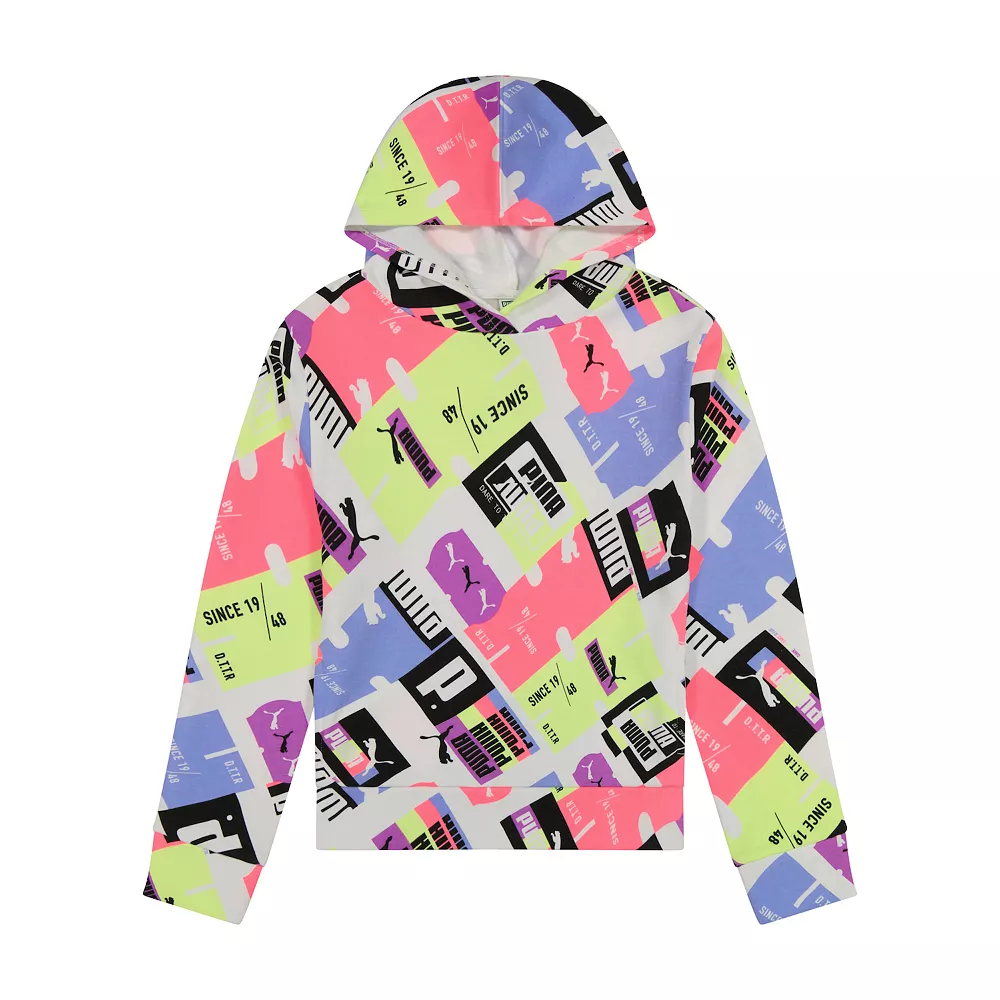 Showoff your brand loyalty in comfort and style with this standout girls’ fleece hoodie from PUMA.