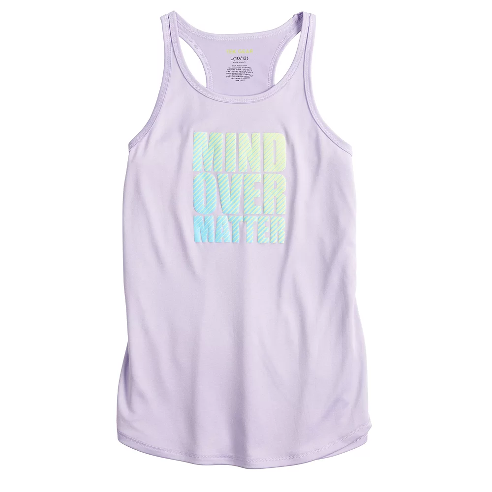 She’ll get a move on in this sporty Tek Gear girls’ tank top featuring a motivational graphic.