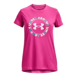 Upgrade her Under Armour style with this moisture-wicking girls’ tee featuring a wordmark graphic.