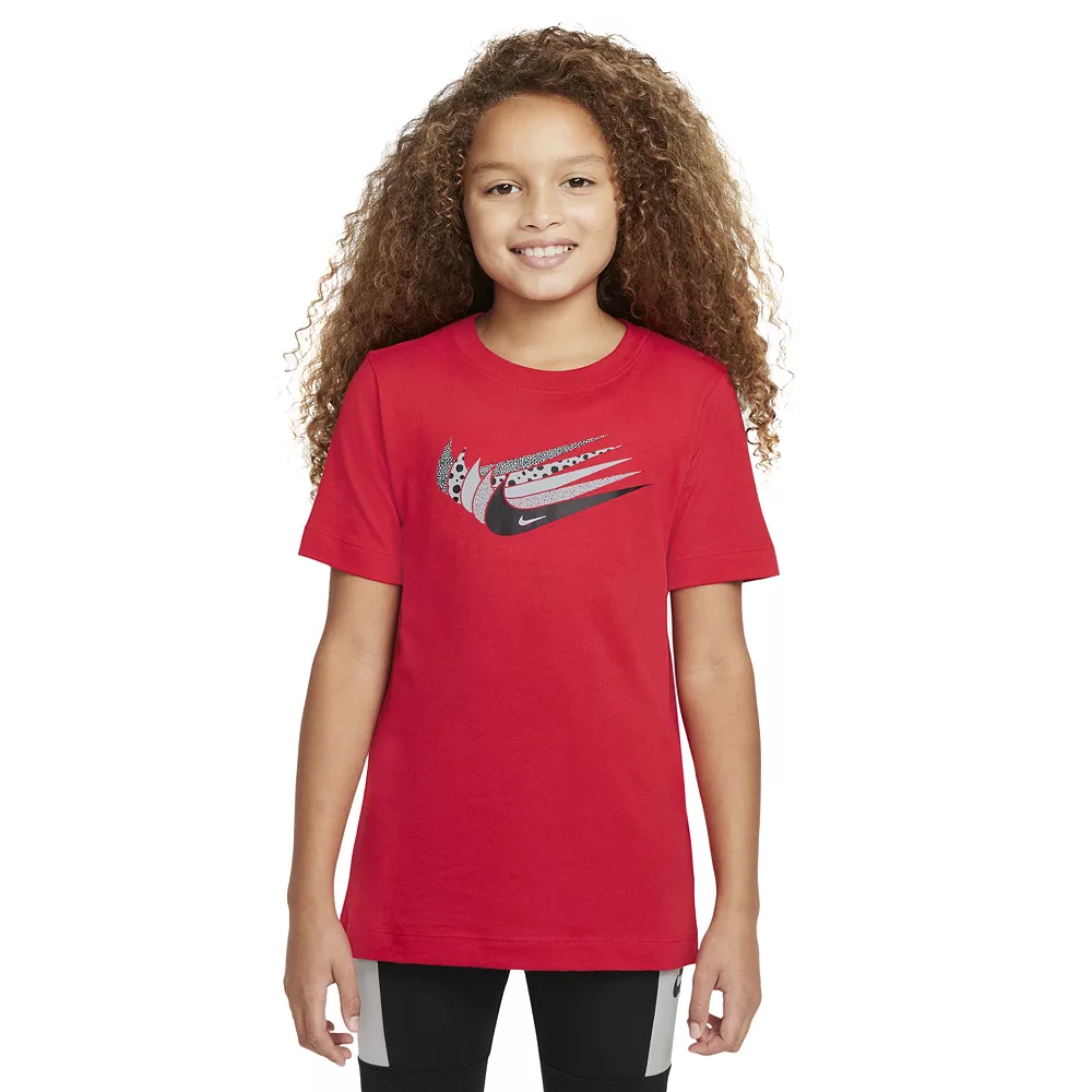 Let’s count the Swoosh logos together while you rep this classic Nike kids’ t-shirt.