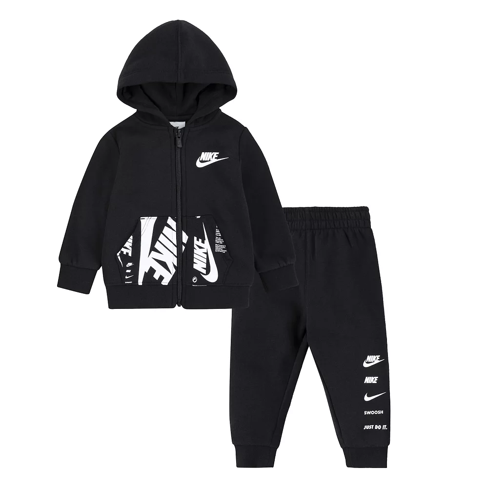 Your little athlete will be ready for action with this toddler boys’ Nike sportswear hoodie and pants set.